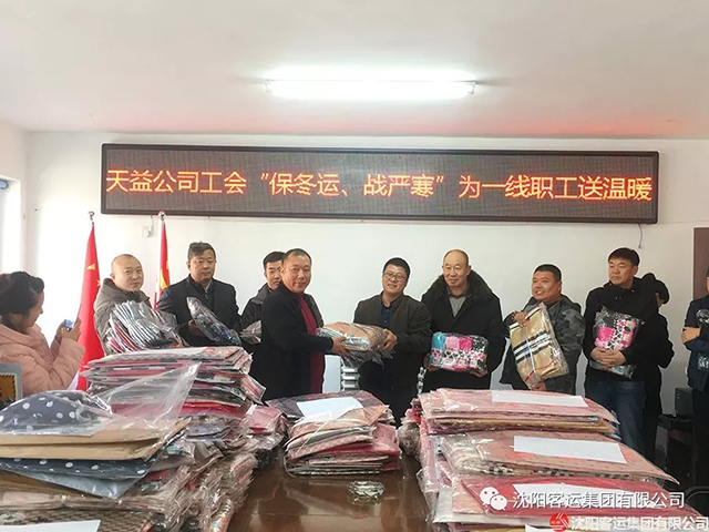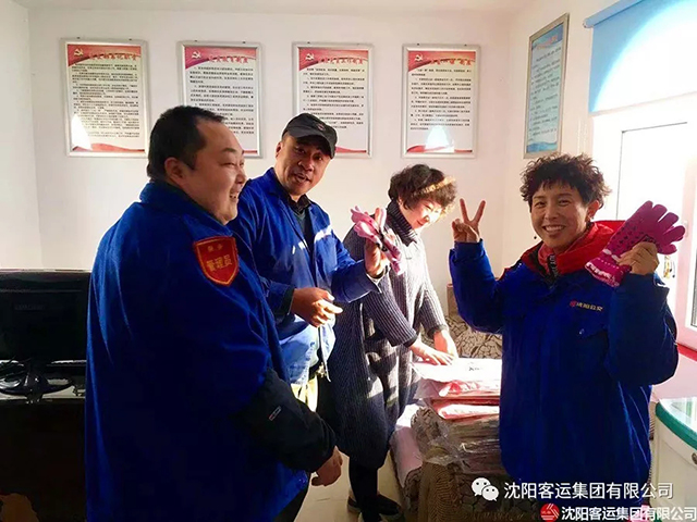 為一線職工送去圍巾、手套