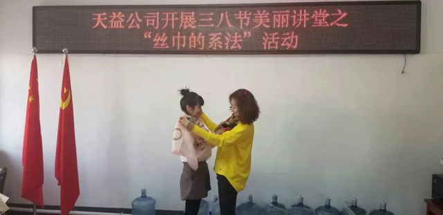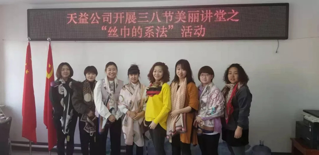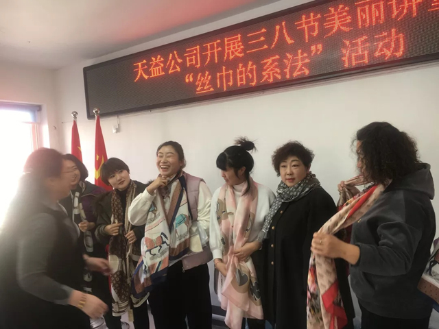 3月8日上午,天益公司舉辦了慶?!叭斯?jié),絲巾造型歡樂賽”活動,向偉大而無私奉獻的女性同志們致以節(jié)日的問候。