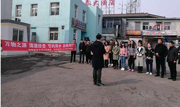 圖為:218路車(chē)隊(duì)黨支部與沈陽(yáng)農(nóng)業(yè)大學(xué)水利學(xué)院在218路終點(diǎn)站大東門(mén)廣場(chǎng)開(kāi)展宣傳《萬(wàn)物之源 滴滴珍貴 節(jié)約用水 你我同行》為主題的倡議儀式,農(nóng)大水利學(xué)院的學(xué)生在大東門(mén)廣場(chǎng)與車(chē)隊(duì)職工共同宣傳節(jié)約用水,人人做起,從點(diǎn)滴開(kāi)始。通過(guò)宣傳,讓大家了解節(jié)約用水的重要意義。