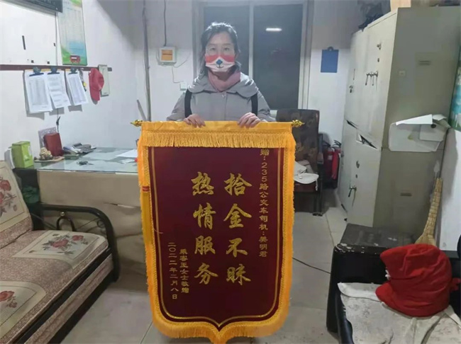 幾天后,王女士制作了一面錦旗送到了235車隊,再次表達對車隊和駕駛員樊明君的感謝。