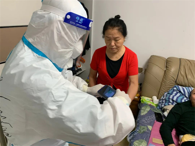 王眾介紹,轄區(qū)內(nèi)有一位外國(guó)友人身體不好,志愿者上門進(jìn)行核酸檢測(cè)時(shí),這位老外深受感動(dòng),一直在說“Thank you!”