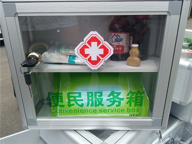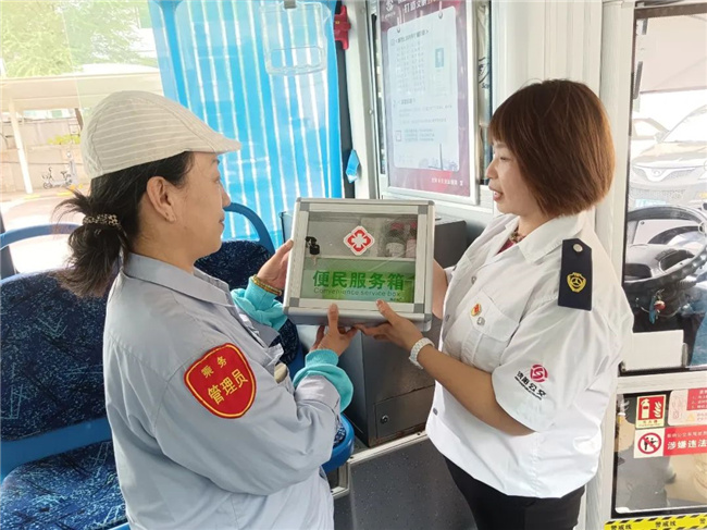 209路車(chē)隊(duì)的每臺(tái)單車(chē)上新增配置了印有“紅十字”標(biāo)志的便民服務(wù)箱,里面放置了口罩、速效救心丸、止血帶、碘伏等日常使用的各類(lèi)物品。廣大乘客在乘坐公交車(chē)時(shí),一旦出現(xiàn)緊急情況,可以得到及時(shí)有效的幫助和初級(jí)救治。