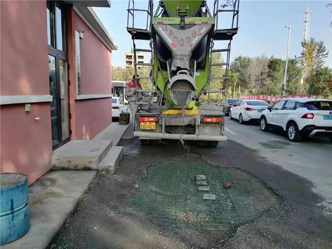 為了徹底解決這個(gè)問題,車隊(duì)租用了一臺(tái)大型水泥攪拌車,將購(gòu)買的水泥等原材料進(jìn)行了均勻攪拌,隨后,車隊(duì)管理人員和駕駛員們齊上陣,將原來的大坑填成了一個(gè)微斜的平面。