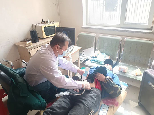 張屹主任細心詢問了解了駕駛員們的身體情況,并通過B超檢查進一步掌握大家的健康狀況,給出適當?shù)闹委煼椒ê涂祻?fù)建議,并為部分需要治療的駕駛員免費發(fā)放了藥品。