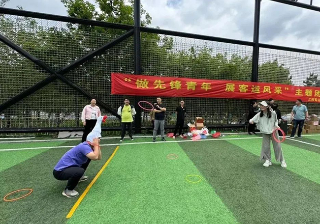 參觀結(jié)束后,大家來到莫子山公園炫彩青年運動場,圍坐在活動場地,分享彼此的感受和收獲,隨后在工作人員的引導下開始了緊張而刺激的團隊體育競技游戲。