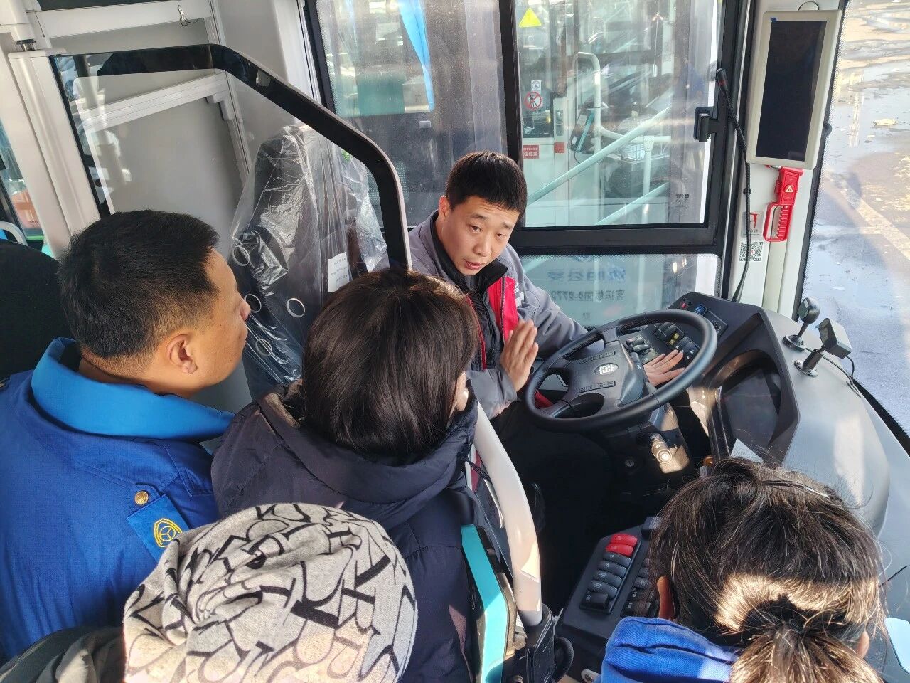 培訓中,主講人系統(tǒng)介紹了新投運公交車輛的整體情況,并圍繞內(nèi)外設(shè)備、中控系統(tǒng)、動力與制動系統(tǒng)以及關(guān)鍵零部件等核心內(nèi)容,進行了實地講解,幫助參訓人員建立對新車型技術(shù)結(jié)構(gòu)及運行特點的框架性認知。針對新車技術(shù)狀態(tài),培訓明確了相應(yīng)的維護保養(yǎng)標準,詳細講解了運營前檢查要點、行車安全注意事項以及常見故障處理方法。