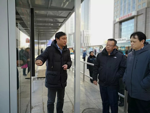 2019年1月28日,副市長(zhǎng)閻秉哲同志在市交通運(yùn)輸局局長(zhǎng)楊樹,沈陽(yáng)市交通運(yùn)輸事務(wù)服務(wù)與行政執(zhí)法中心主任王衛(wèi)東,客運(yùn)集團(tuán)董事長(zhǎng)徐健、副總經(jīng)理周宇航的陪同下,對(duì)沈陽(yáng)北站南廣場(chǎng)公交樞紐站進(jìn)行了視察。