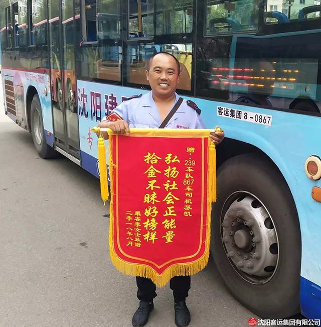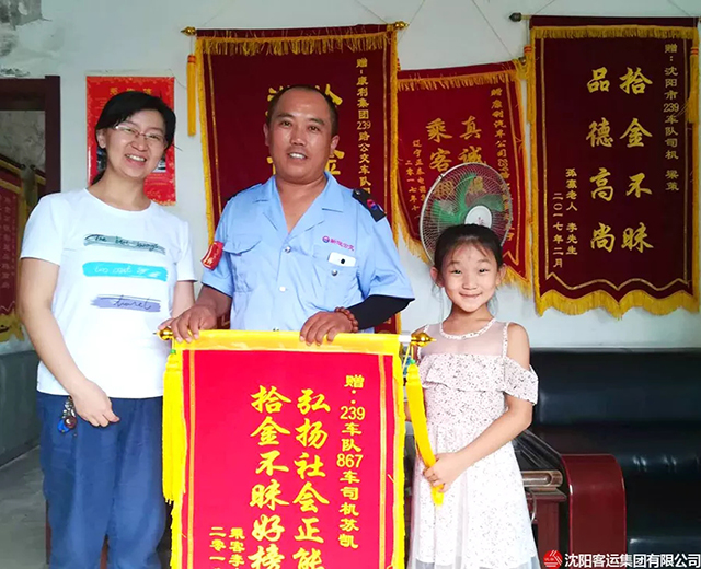 8月23日上午,乘客李女士帶著女兒將一面錦旗送到康利公司239車隊,并要當面感謝好心駕駛員蘇凱。